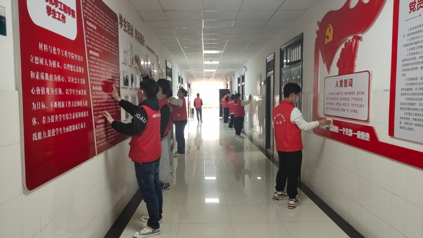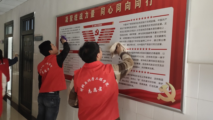 为进一步弘扬奉献、友爱、互助、进步的志愿服务精神,落实文明校园创建工作,3月17日下午,材料与化学工程学院绿邦志愿服务队组织学生志愿者20余名在化工楼开展“美化校园你我同行”志愿服务活动。