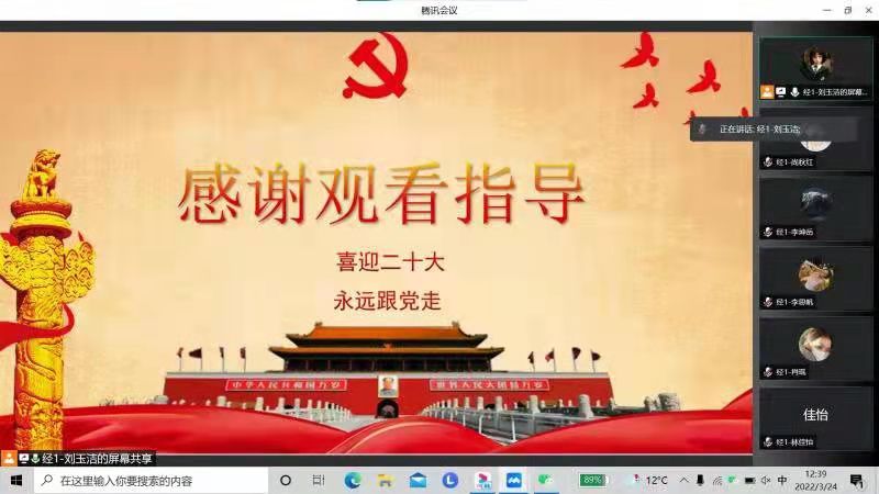 为进一步深入学习党的十九大和十九届历次全会精神,迎接党的二十大召开,鼓励经管学子在新时期继续发扬奋斗精神、建功新时代。2022年3月,经济与管理学院各班积极响应学院号召,线上举办了 “喜迎二十大、永远跟党走、奋进新征程”主题团日活动。