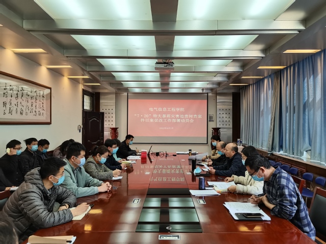 4月1日上午,电气信息工程学院在西二楼301会议室召开郑州“7·20”特大暴雨灾害追责问责案件以案促改工作部署动员会,学院领导班子、科级以上干部参加。会议由院长王延峰主持。