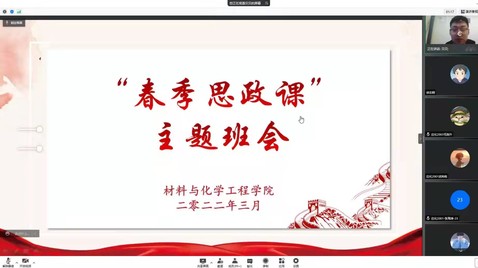 3月15日至3月31日,材料与化学工程学院通过线上线下相结合的式开展系列“春季思政课”主题班会,全体学生参加。