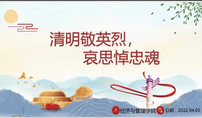为缅怀革命先烈、寄托哀思,激发当代大学生的爱国情感,从而营造出经管学子崇尚英烈、缅怀英烈、学习英烈、捍卫英烈的浓厚氛围。2022年4月5日,经济与管理学院组织各班开展“清明敬英烈 哀思悼忠魂”网上祭英烈主题团日活动。