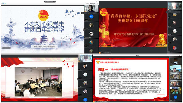 为迎接党的二十大胜利召开,庆祝建团100周年,纪念五四运动103周年,5月4日,建筑环境工程学院各班级团支部开展“青春百年路,永远跟党走”主题团日活动。