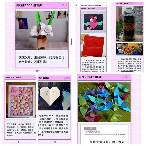 为增强同学们的感恩意识,丰富校园生活,在母亲节来临之际,电气信息工程学院开展“爱无距离,折出心意”主题活动,以此表达对母亲的深深爱意。