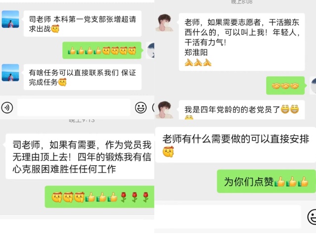 压实责任,共筑防线。学院召开疫情防控会议,针对安全稳定、思想引领、实验室管理、线上教学等工作进行深入研讨,细化各项工作责任人,做到守土有责,守土尽责。通过召开辅导员会、网格长会、党员干部会、主题班会等,一级一级把责任落实到人、一层一层将通知传达给每一位师生,全面提升群防群控能力。结合学院实际情况,制定《关于校园实行封闭管理期间广大教师参与学生教育管理工作的通知》,全体系(中心)主任、班主任、研究生导师补充防控工作力量,配合做好学生管理和思想教育相关工作,密织疫情防控安全网。