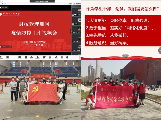 近来,疫情防控形势依然严峻复杂,5月4日学校实行封闭管理,启动线上教学,材料与化学工程学院坚决贯彻落实学校疫情防控工作整体部署安排,采取多种措施攻坚克难,将疫情防控工作做实、做细,师生团结一心,全力做好校园疫情防控工作。