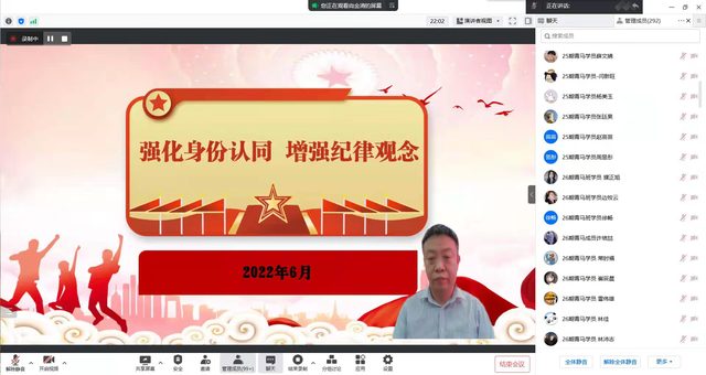为进一步加强团学工作队伍建设,强化政治意识和纪律意识。6月3日,校团委邀请校青年讲师团成员、校纪委综合室副主任尚金清老师为团学骨干队伍作题为《强化身份认同,增强纪律观念》的专题培训,校院两级青马学员、青马学会会员及校级团学骨干代表300余人通过腾讯会议参加培训。