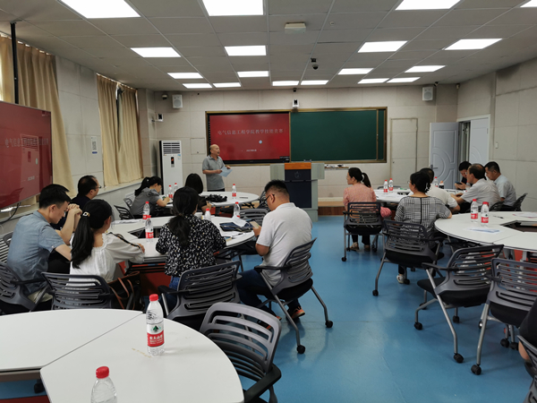 6月22日下午,电气信息工程学院教学技能竞赛在教三楼311智慧教室举行。邀请王永华教授、宋寅卯教授、李银华教授、冯建勤教授、姜素霞教授出席比赛并担任竞赛评委,学院各系遴选推荐的7名教师参加了竞赛。学院领导班子、近三年入职青年教师参加观摩了比赛。比赛由副院长郑安平主持。