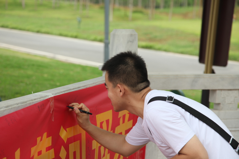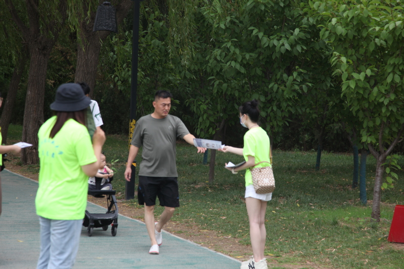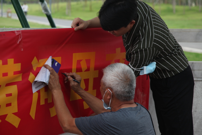 活动之前,同学们精心设计制作了宣传单页,用漫画和图示方式传达保护黄河和绿色生态发展的重大意义。在实践活动中,同学们在景区主要节点一边向群众发放宣传单页,一边宣讲生态保护知识和理念,志愿义举得到了广大群众的一致认可,不论老幼,纷纷在条幅上签名响应。