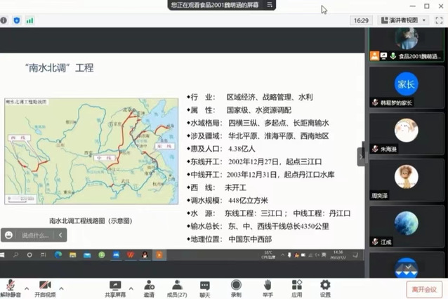 同时,为克服距离影响以及疫情形势带来的限制,扩大实践活动覆盖面,7月7日-9日,实践队员在各地社区、村委会等的支持和配合下组织群众开展环保知识云宣讲。宣讲内容通俗易懂,丰富实用,宣讲过程互动积极,反响热烈,有效提高了大众对“南水北调”和水资源保护的认知程度,对建设节约型社会有积极推动作用。