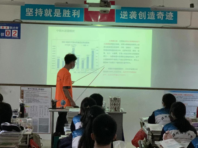 为进一步扩大宣讲的影响力和效果,7月7日,实践队员在浙江省温州市翔宇中学进行了线下宣讲,为同学们普及了“南水北调”水资源现状,垃圾分类,污水处理,循环用水等相关知识,既提高了同学们节水护水的意识,也为“节水从点滴做起”提供了具体的实例。最后呼吁同学们带动身边的家人朋友加入节水护水的行列中,为水资源保护贡献自己的力量。