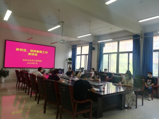 为加强暑期留校研究生疫情防控和实验室安全教育,及时了解掌握研究生学习情况和假期生活需求,做好研究生管理与服务工作,7月14日上午,材料与化学工程学院在化工楼222召开暑期留校研究生和导师代表座谈会,学院副院长张晓静、党委副书记司丽娜、研究生管理办公室全体老师、留校研究生代表和导师代表参加会议。