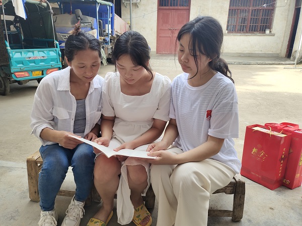 7月3日至12日,位于河南省南阳市、焦作市和新乡市的小分队志愿者带着牛奶和大米等慰问品就近走访了经济困难的学生的家庭。小分队志愿者将慰问品送给受访的家庭,与家长和学生进行了亲切的交谈,详细地了解了受访同学的家庭状况和对国家相关资助政策的了解情况。小分队志愿者结合自己的受助经历向受访的学生和家长细致地介绍了国家“奖、贷、助、补、减”和“新生绿色通道”六位一体的奖助体系,以及具体的申请条件和申请方法,让受访的学生和家长更加清楚地了解了国家资助政策,深切感受到国家对莘莘学子的关心与关怀。