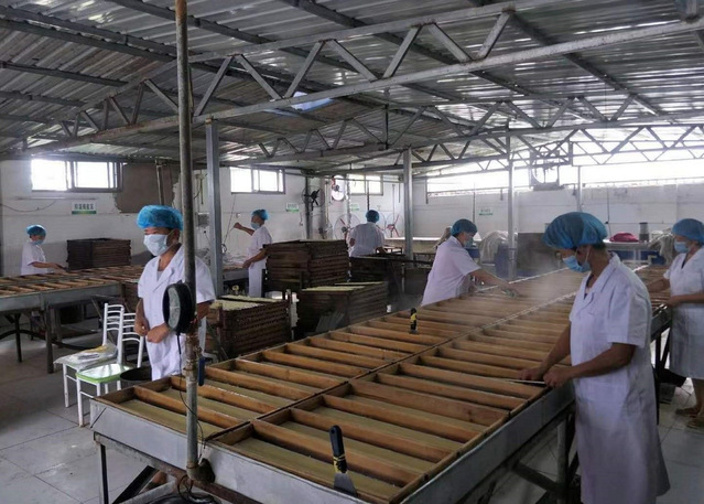 乡村振兴,产业兴旺是重点。实践团在村干部的带领下走进了位于沈楼村北的凤城食品厂,学习乡村振兴中的产业模式。风城食品厂作为沈楼村的特色产业,主要经营陈留豆腐棍的加工销售。陈留豆腐棍是开封市陈留镇独具一格的传统名产,作为古代向皇帝朝贡的佳品,更是陈留镇餐桌上必不可少的美食。团队队员们走进厂中,深入了解豆腐棍的生产流程,真切地感知乡村振兴产业的不易。