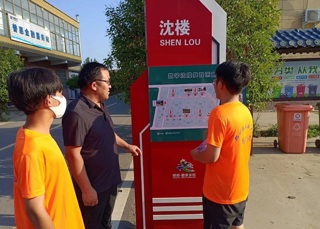 乡村振兴,生态宜居是关键。14日下午实践团队队员们来到沈楼村。实践团首先通过参观走访了解沈楼村近年来的基础设施建设情况,对沈楼村近年来新旧面貌变化、村民生活质量提高程度、乡村振兴产业具体成效以及在党的带领下村民如何脱贫致富、奔向小康进行充分的了解。