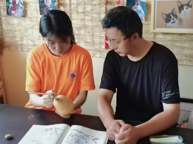 作为非物质文化遗产的葫芦烙画也是构成中华传统文化的一个重要组成部分。在葫芦烙画的工作室,张丙文先生向队员们讲解了“葫芦烙画”的悠久的历史和独特的艺术风格,工作室内,老师傅简单几笔勾勒出栩栩如生的图画,他们娴熟的技艺,让队员们更真切地感悟到烙画葫芦中中国画手法以及烙画铁笔熨出丰富的层次与色调所传达出的独特的艺术魅力。参观过程中,队员们被周围所摆的生动可爱,栩栩如生的烙画葫芦所吸引,在这每一个烙画葫芦中,仿佛都能看到一个故事,一个关于传承的故事。走出葫芦烙画的工作室,队员们纷纷表示要继续为宣传和传承烙画葫芦贡献自己的力量,让更多的年轻人看见它们,触碰它们,感受它们,让烙画葫芦这门传统手艺像春天葫芦藤一样青翠茁壮。