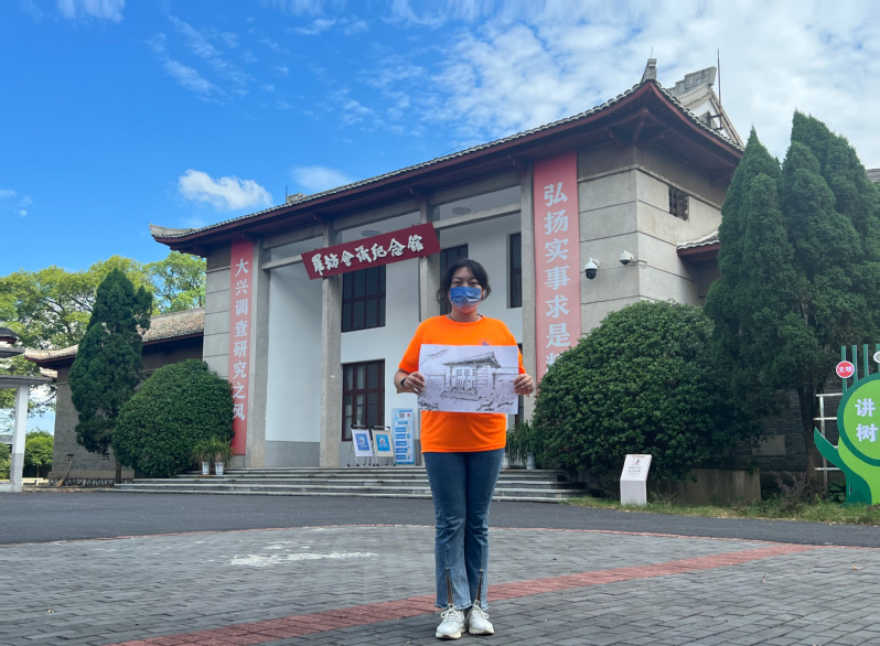 本次活动队员们以云组队的方式在家乡分头展开。同学们充分发挥艺术专业的特长,发掘家乡的红色元素,用绘画的方式进行记录。高欣同学在江西新余再现了罗坊会议的现场,王林燕同学在贵州遵义描绘了遵义会议旧址,黄一鸣同学在广西桂平呈现了黄日葵和胡福田两位革命先驱的伟岸英姿,王楠同学在河南林州为大家留下了红旗渠青年洞的宏伟景象。在长沙的王卓汎同学笔下,毛主席在橘子洲头凝神远望;在唐山的王雪春同学纸间,李大钊于松柏间期盼革命曙光……