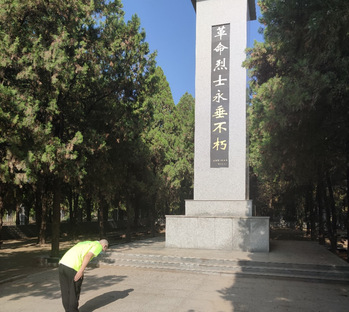 实践队员刘铭到达新郑市烈士陵园进行党史学习。新郑市烈士陵园位于新村镇马垌村望京楼遗址积栗台下,占地面积1600平方米,安葬有革命烈士遗骸骨灰55名。在庄严的革命烈士纪念碑前,实践队员怀着对革命先烈的崇敬之情,向烈士们鞠躬、默哀。随后,实践队员瞻仰了烈士们的事迹,用真挚的感情对革命先烈们进行了缅怀。在艰苦卓绝的革命战争年代,无数中华优秀儿女为了实现国家解放和人民安宁,献出了宝贵的生命,建立了永垂史册的不朽功勋。他们的英雄事迹和光辉业绩值得我们永远缅怀和尊敬,他们伟大的革命精神始终是激励我们奋勇前进的强大动力。实践队员表示,通过此次活动自己重温了革命历史,也深深震撼于先烈们不惧牺牲、艰苦卓绝的革命精神,自己将继承和发扬革命先辈的优秀品质,不忘过去,砥砺前行,做一名合格大学生。
