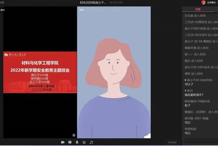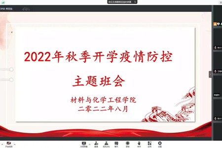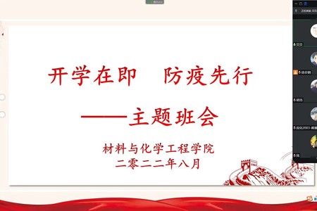 为有效开展新学期各项学生工作,帮助同学们尽快进入学习状态,8月27-28日,材料与化学工程学院全体专兼职辅导员、班主任分班分年级召开新学期线上主题班会。