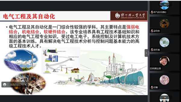 2022年9月4日上午,电气信息工程学院电气工程及其自动化专业通过腾讯会议平台召开了专业介绍会议,系主任邱洪波、专业教师和全体2022级新生参加。