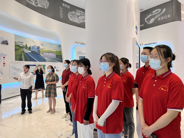 首先,青马学员们观看了郑煤机的宣传片,随后,青马学员们跟随负责讲解的工作人员来到展厅内部,讲解员带领青马学员们重走了一遍习近平总书记走过的路,一路上讲解了郑煤机集团的发展历史、技术上的重要创新、以及企业曾经面临危机,在20世纪90年代中后期,受煤炭行业长期低迷影响,郑煤机几近崩溃破产边缘,从2012年郑煤机就开始考察各个行业,逐步思考转型升级,2016年开始转型,以“转型进入汽车零部件行业”为代表的高端智能制造结构性改革开启了郑煤机的国际化进程,经过一系列收购,公司已经拥有了全球汽车零部件研发、生产、销售及服务网络。据讲解员介绍,目前国内每生产3辆车,至少有1辆车装配郑煤机旗下公司生产的索恩格电机。青马学员们认真参观了索恩格电机地实体,并对此十分感兴趣。郑煤机也没有离开传统煤机制造业,而是不断打磨产品、提高技术水平,坚持创新,目前可以为客户提供全套的煤矿机械,并且可以利用大数据系统智能为客户分析最合适的煤矿机械。