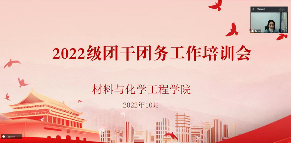 为推进基层团组织规范化建设,做好新生团关系转接等团务工作,10月5日,材料与化学工程学院通过线上线下方式组织召开2022级团干团务工作培训会,学院团委书记赵梦婕、团学骨干及全体2022级团支部书记、组宣委员参会。