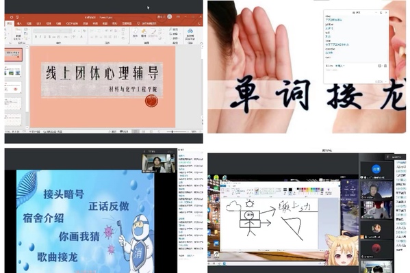 为丰富疫情防控形势下大学生宿舍学习生活,引导同学们保持健康向上的生活态度共同抗“疫”,1030-31日,材料与化学工程学院组织各班级开展“‘疫’路同心、我们在一起”线上心理健康教育团辅活动。