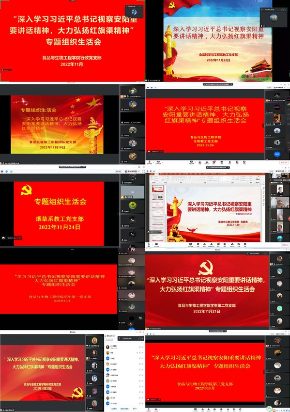 近日,食品与生物工程学院10个党支部分别召开以“深入学习习近平总书记视察安阳重要讲话精神,大力弘扬红旗渠精神”为主题的专题组织生活会。会议由各党支部书记主持,学院党委委员以普通党员身份参加所在支部专题组织生活会,并指导联系支部专题组织生活会。