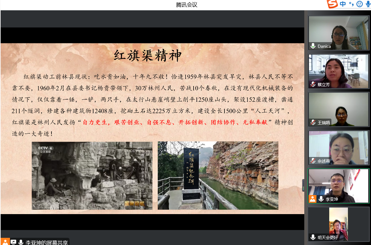 会上,各党支部认真学习了习近平总书记视察安阳重要讲话内容,观看中央电视台《国家记忆》栏目播出的专题片《根脉——红旗渠精神》,学习红旗渠建设者们开山辟路的精神和意志,重温艰苦修渠岁月,追忆先辈为民初心深刻领会“红旗渠精神”内涵及其时代价值。围绕会议主题,同志们交流心得体会,教师党员表示要把“红旗渠精神”融入教书育人、学院建设全过程,将红旗渠精神转化为思政课资源好红旗渠故事;学生党员则表示要继承和发扬吃苦耐劳自力更生艰苦奋斗的精神,做有理想、敢担当、能吃苦、肯奋斗的新时代好青年。会上所有党员按照红旗渠精神,结合个人实际工作情况,对自己进行了深入剖析。