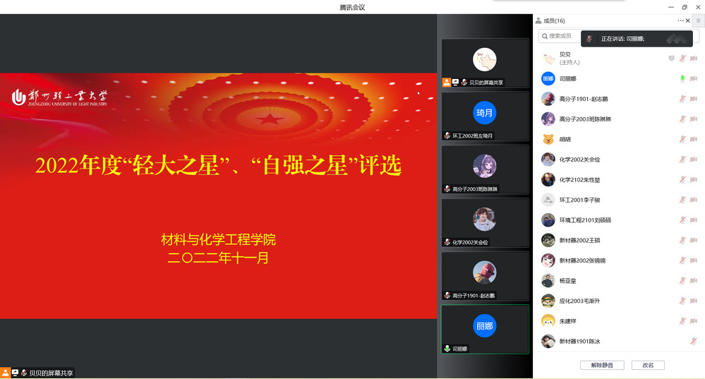 材料与化学工程学院开展2022年度十佳“轻大之星”、十佳“自强之星”线上评审活动