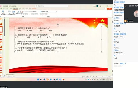 会上,师生首先学习了《中华人民共和国宪法》有关知识、习近平总书记关于法治建设的系列讲话精神以及相关法律法规,使师生深刻认识到宪法的地位和作用,进而树立法治观念。随后,大家观看了视频“我与《宪法》的一天”,纷纷感慨此次观影让自己受益匪浅,也深刻领会到宪法存在于生活方方面面,要力争做一名学法、守法、用法的好公民。之后,各团支部结合学习内容,组织开展了线上法治知识竞赛活动,通过以赛代练的方式进一步帮助同学们掌握与日常学习生活、成长发展密切关联的最基本的法律知识,促使学生树立法制观念,增强对法律知识的了解和认识。