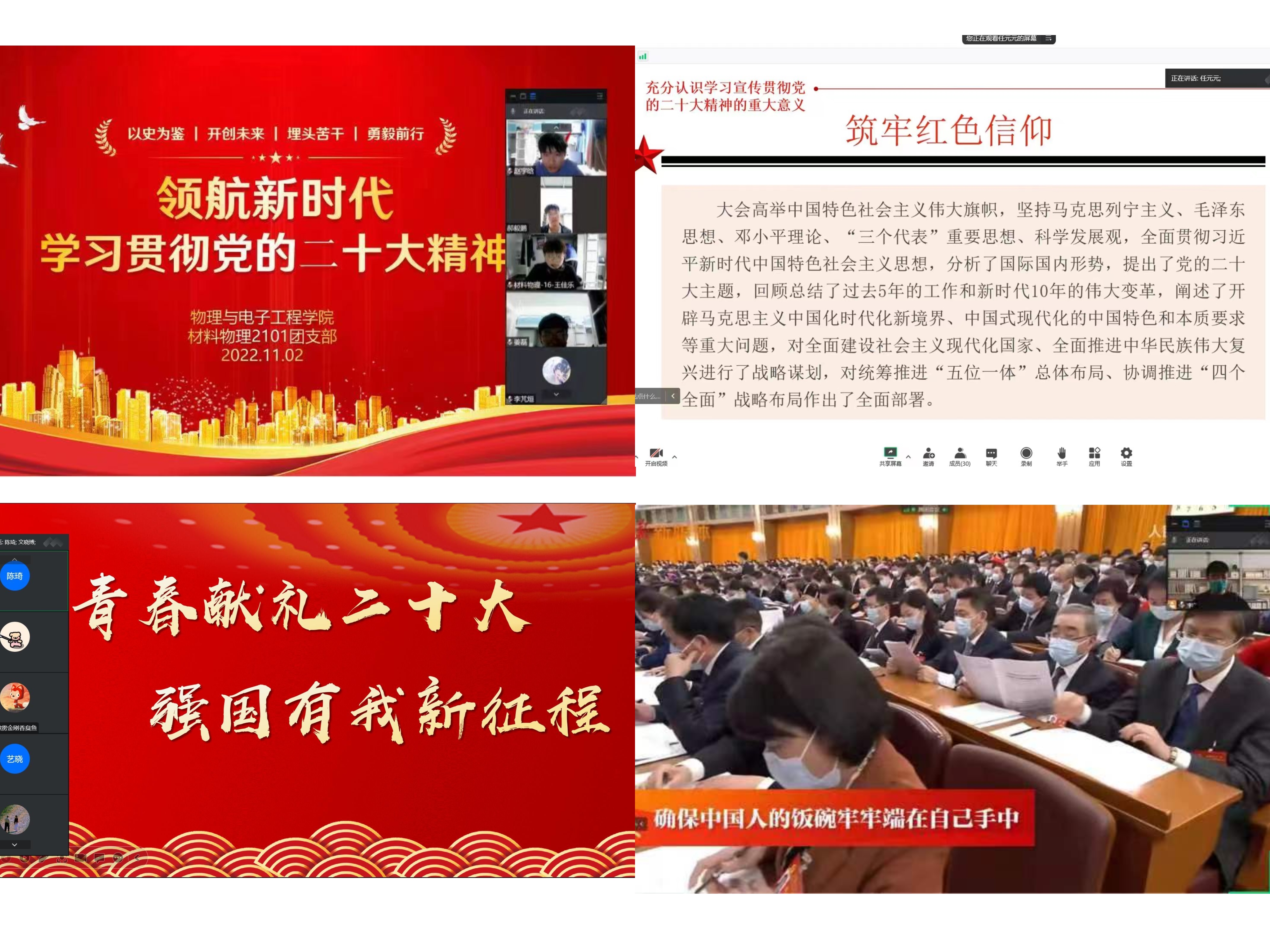 为深入学习宣传贯彻党的二十大精神,10月16日至10月30日期间,物理与电子工程学院各班团支部组织开展了“青春献礼二十大,强国有我新征程”主题团日活动。