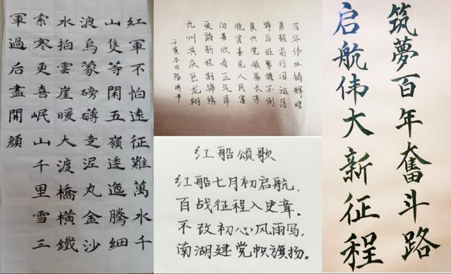 活动中同学们积极参加、踊跃报名,精心准备了一幅幅参赛作品。学院共收到50余幅作品,分为书法和绘画两类,其中书法类包括硬笔书法和软笔书法。同学们各展千秋,字体或苍劲有力、或隽永飘逸、或清秀雅致;绘画类有油画、水彩、彩铅等,每一幅都色彩鲜明,构图巧妙,画尽意在。本次投稿的作品,内容丰富,形式多样,无不体现了同学们对民族复兴的信心和勇担重任的责任心。经过相关评审组的认真筛选,共评选出一等奖3名,二等奖6名,三等奖10名,作品择优在学院团属微信公众平台展出。