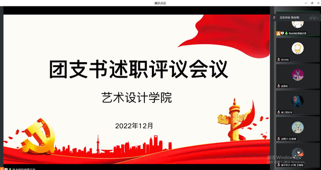 为更好的总结年度基层团组织工作,加强基层管理水平,进一步激发基层团组织的活力,12月中旬,艺术设计学院通过腾讯会议召开了2022年度基层团支部书记述职评议大会,艺术设计学院全体团支部书记参与了此次会议。