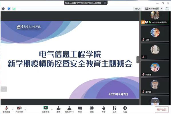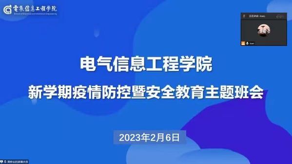 2月6-7日,电气信息工程学院召开新学期疫情防控暨安全教育主题班会,全体辅导员、学生参加。