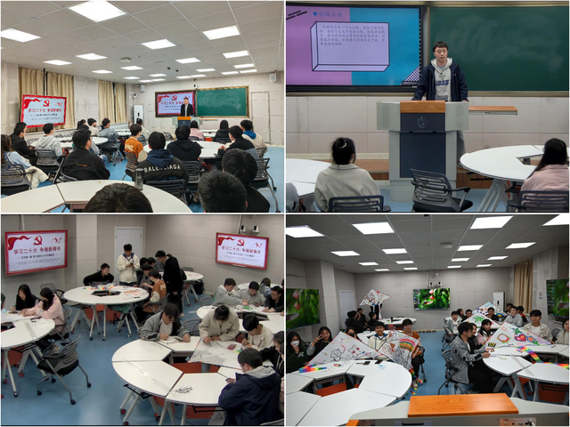 班会以“学习党的二十大,争做时代新青年”为主题,分三个环节进行。第一个环节:思想引领,筑梦新时代。辅导员老师刘丰阳通过案例、视频等生动介绍党的十八大以来我国在政治、经济、文化、科技、外交等方面取得的巨大成就,从奋斗新时代、贯彻新思想、擘画新蓝图、启航新征程四个方面带领同学们深刻理解党的二十大精神内涵。鼓励同学们坚定理想信念,积极传承和践行红色精神,争做有理想、有本领、有担当的时代新人。第二个环节:榜样示范,志做新青年。2022年国家奖学金获得者、“轻大自强之星”张登攀为同学们分享自身的成长,生动展示了当代青年将“小我”成长融入“大我”奋斗之中的先进事迹和青春风采。第三个环节:放飞梦想,建功新征程。同学们相互合作,用画笔在空白风筝上绘出自己的梦想和期待,一起激情奔跑,放飞承载自己对未来美好期待的风筝,也放飞梦想、放飞希望。