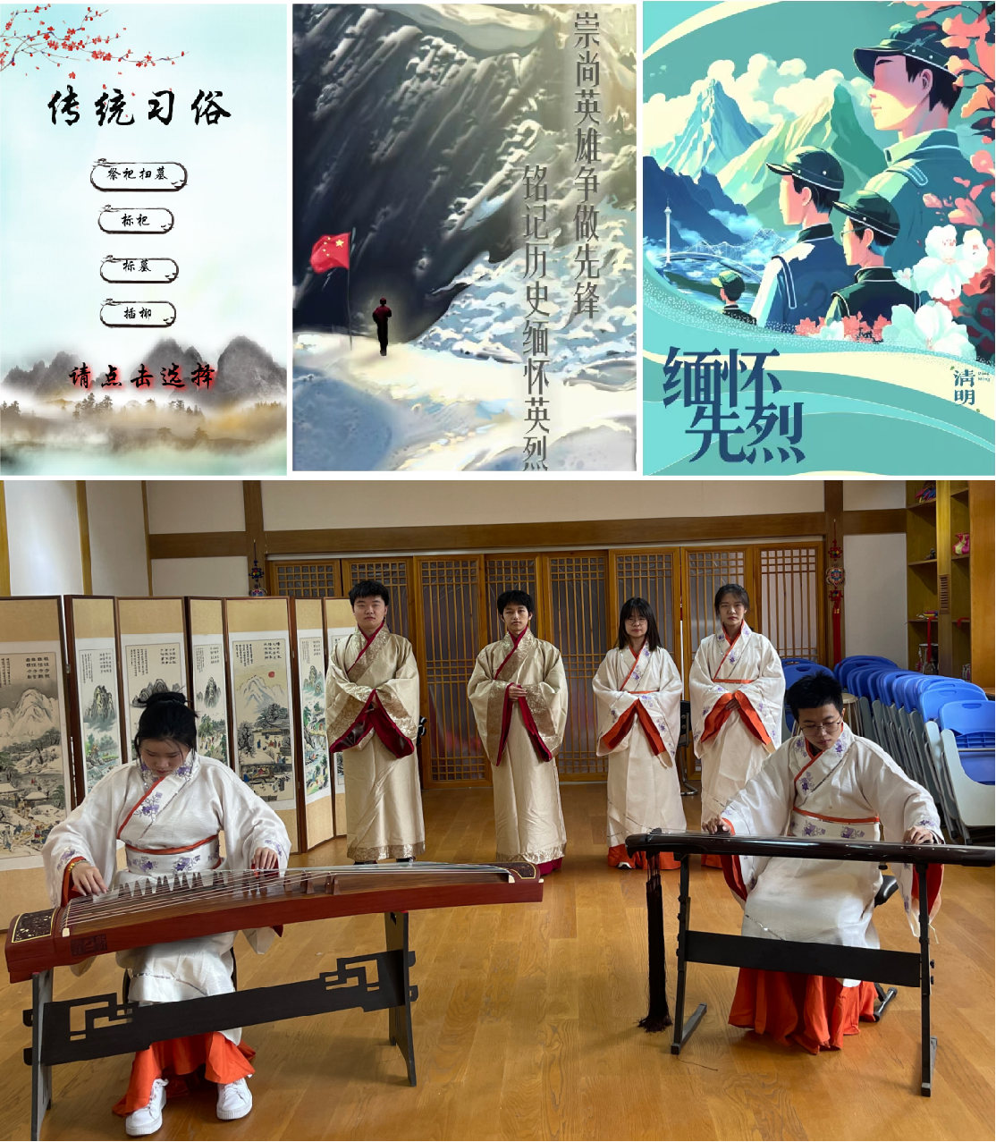 艺术设计学院、计算机与通信工程学院、外国语学院结合学院特色,开展了主题海报设计大赛、电子作品设计大赛、经典诵读活动,征集作品形式多样,内容丰富,营造了崇尚英烈、缅怀英烈、学习英烈的浓厚氛围,提高了青年对我国传统节日与传统文化的认识,强化了“爱英雄、学英雄、敬英雄”的意识,增进了爱党、爱国、爱社会主义情感。