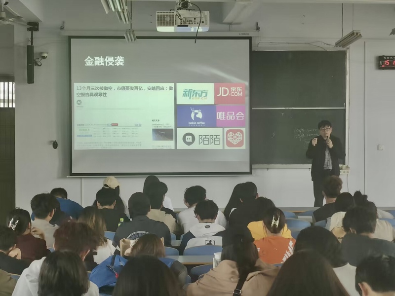 本次宣讲主要围绕“国内外变局背景下的青年期冀”主题,孙老师以党的二十大报告对青年的要求和希望开始切入,诠释了国家对青年工作的高度重视以及寄予的高度期望,并对当今世界面临的百年未有之大变局形势进行了论述。他从政治、经济、公共卫生、科技、外交等领域,全面盘点了国家取得的耀眼成绩,同时也结合俄乌冲突、两会、芯片科技打压、苏丹撤侨等时事热点,对当前充满变数的国内外环境进行了解析。他讲到,国家日渐强盛,但未来来自世界各方的竞争压力也日渐增强,新一代需要承担的责任和面对的挑战也将更甚于今。作为新时代的青年,要扛起国家的希望,既要有居安思危的意识,也要有舍我其谁的自信,在复杂环境下为民族复兴大任贡献青春力量。