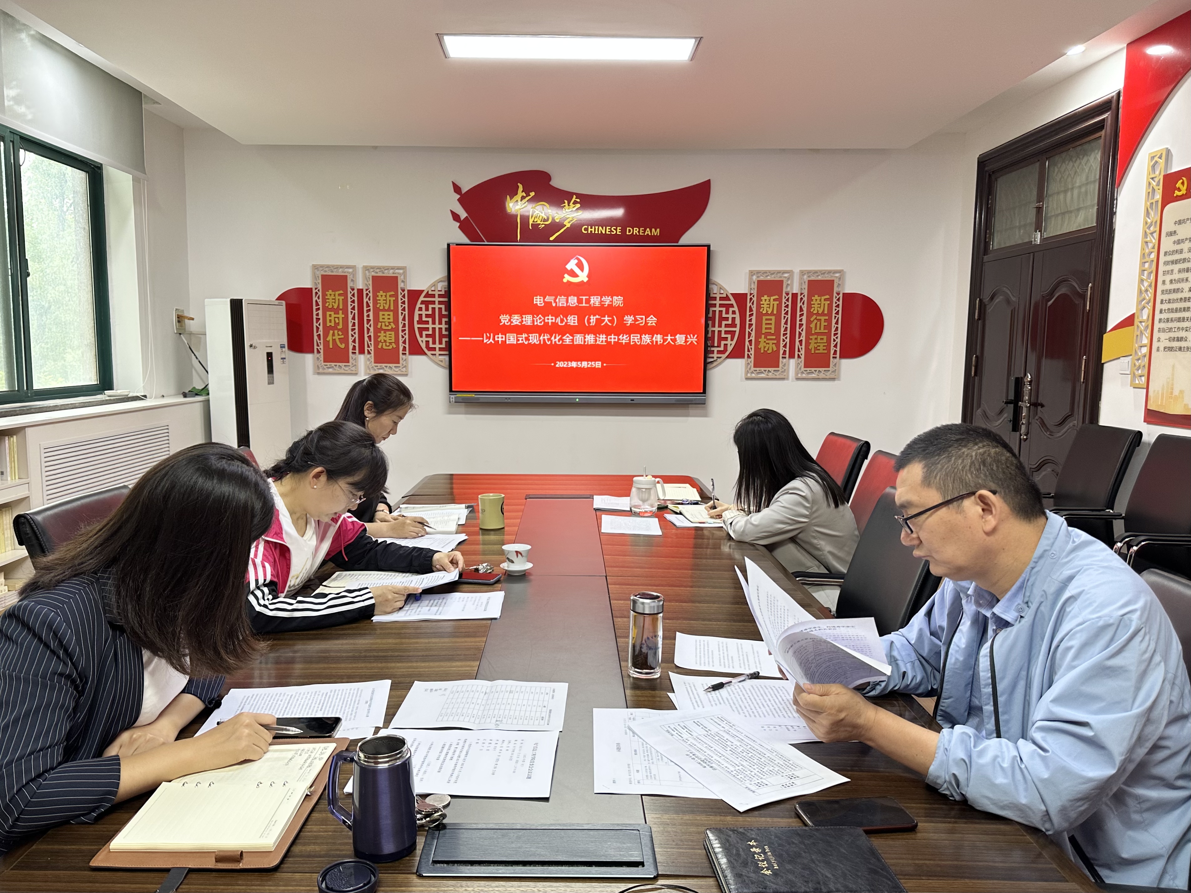 5月25日上午,电气信息工程学院在西二楼202召开党委理论学习中心组主题教育集体学习研讨会,开展“以中国式现代化全面推进中华民族伟大复兴”专题学习。学院党委理论中心组成员参加。会议由党委书记张辉主持。