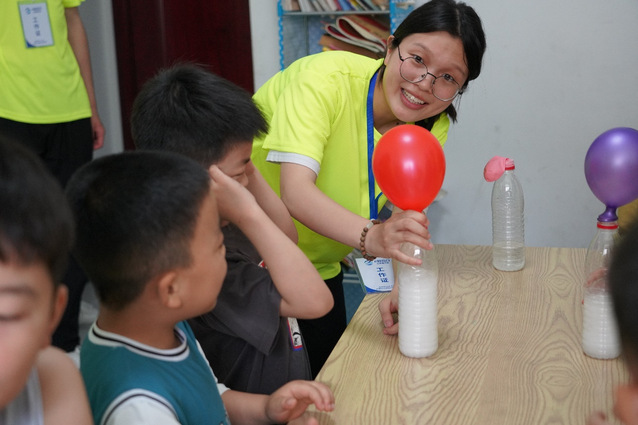 基于此,团队来到商丘市民权县乡村小学,为学校学生和留守儿童开展特色科学课,“为什么这个会最后变成肥皂呀”“这个仪器怎么操作啊”“姐姐,你能不能帮我一起做实验呀”…一句句稚嫩的话语,一双双好奇的眼睛,一张张求知若渴的脸庞,为队员们带来了很大触动,欢声笑语中,一场寓教于乐的特色科学课结束了,双方都有很大收获,相信队员们也通过沟通和陪伴让他们感受到了关爱。