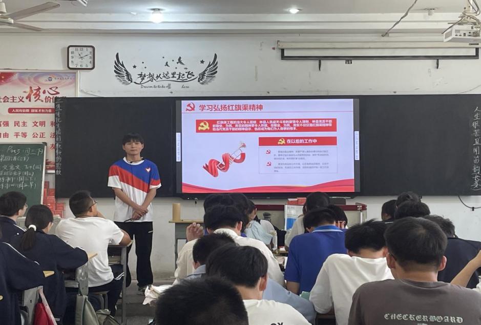 2023年6月,宣讲队成员们以“为什么要修红旗渠”“为什么敢修红旗渠”和“为什么能修成红旗渠”三个问题为切入点,面向学生会、学生社团、学校“青马工程”培养班开展主题宣讲。通过看红旗渠纪录片、主题团课、小组研讨等多种形式,围绕“自力更生,艰苦创业,团结协作,无私奉献”的精神内涵,带领大家更深入的理解红旗渠精神、了解红旗渠修建的历史背景和重要意义。宣讲队成员以饱满的热情和细腻的情感感染着在座的每一个人,让大家更加真切的感受到“人工天河”——红旗渠的宏伟浩大。同学们纷纷表示作为新时代的青年学子,要继续发扬和传承红旗渠精神,做新时代红旗渠精神的坚定传承者和践行者。