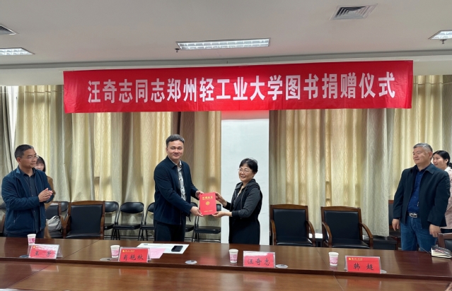 捐赠仪式上,副校长肖艳秋代表学校对汪奇志同志的捐赠表示感谢,并颁发捐赠证书。他表示,汪奇志女士把自己珍贵的藏书捐赠予我校,这是对我们最大的信任和鼓励。汪奇志女士一生以书为伴,心系学子、情系教育,带着对学校教育事业的关心和支持,将高尚的品格和勤学不止的精神通过赠书传承于轻大学子,既丰富学校馆藏资源,又发挥图书文化价值。