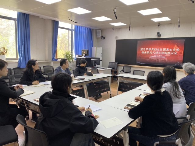王伟总结发言。他强调,安全稳定是一切活动的基础和前提,国家安全是安邦定国的支柱和基石。学院党员干部要提高政治站位,时刻保持清醒头脑,坚守强大政治定力;要强化责任担当,以更加高尚的政治情怀、更加负责的政治态度、更加过硬的政治素质,切实做好学院各项工作;要保持底线思维,不断增强忧患意识、防范风险挑战,做到居安思危,提高防范和处置风险能力。
