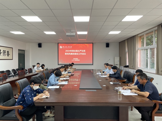 4月18日下午,软件学院在软件楼210召开全面从严治党暨党风廉政建设工作会议。学院领导班子成员、各党支部书记和科级干部参加会议。会议由学院党委书记武丰龙主持。