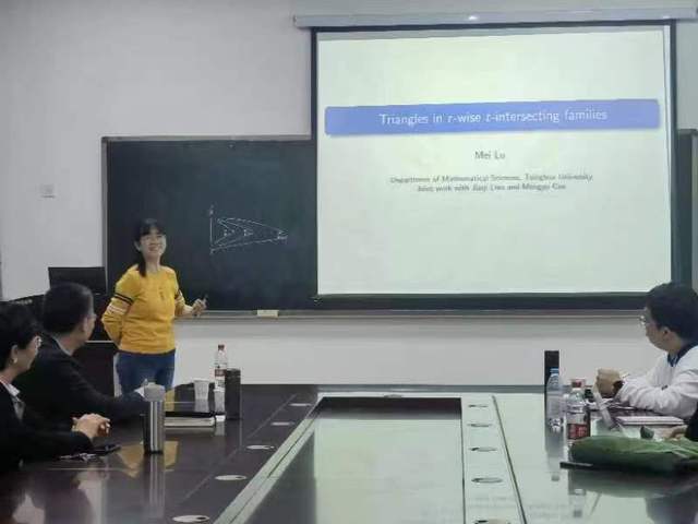 郝荣霞教授通过生动的图示和深入浅出的讲述,介绍了团队关于网络的拟阵连通度、树连通度、路连通度的丰富成果。张肇明教授以实际传递信息问题为背景,从数学模型建立到模拟实验,结合理论和实验,展示出如何寻找社交网络中具有影响力的成员。陆玫教授基于著名的EKR问题,展示了对相交族中三角形结构的研究成果。
