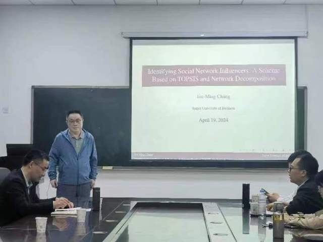 为加强学术交流,强化学科交叉融合,4月19日数学与信息科学学院在东一楼310举办了第五期至第七期轻大数学论坛。北京交通大学郝荣霞教授、台北商业大学张肇明教授和清华大学陆玫教授,分别做了题为《Tree connectivity and path connectivity of some networks》、《Identifying Social Network Influencers: A Scheme Based on TOPSIS and Network Decomposition》和《Triangles in r-wise t-intersecting families》的报告并与师生进行深入交流。本次活动由学院副院长黄士国主持,我院部分教师和研究生、本科生共同聆听了报告。北京师范大学、湘潭大学、河南师范大学和河南科技学院的几位相关方向老师也专程赶来进行学术交流。