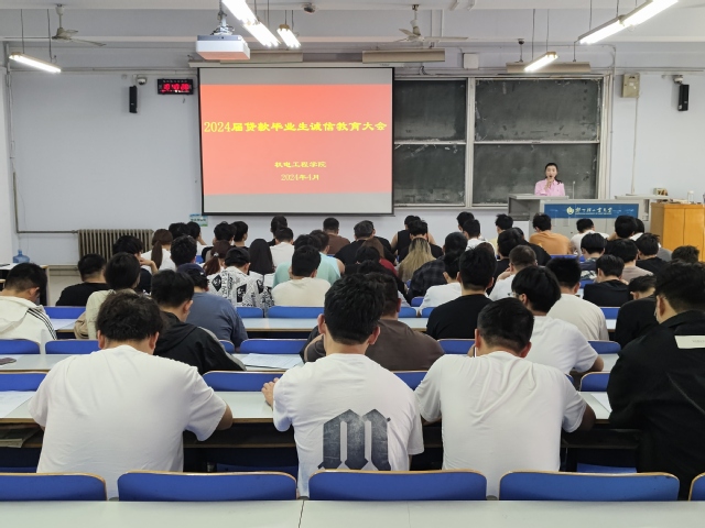 为增强贷款毕业生诚信意识,帮助学生掌握还款流程,做好贷款毕业生毕业确认工作,4月26日,机电工程学院在东一楼200教室召开2024届贷款毕业生诚信教育大会,学院资助工作专职辅导员张东旭、2024届全体贷款毕业生参加会议。