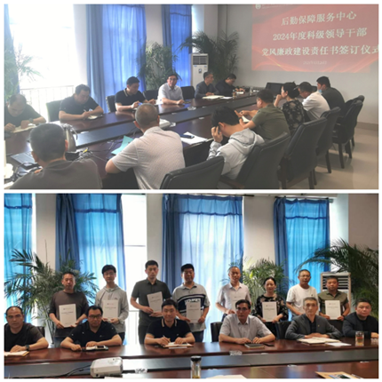 4月26日上午,后勤保障服务中心党总支举行党风廉政责任书签订仪式。后勤全体班子成员及科室负责人参加会议。