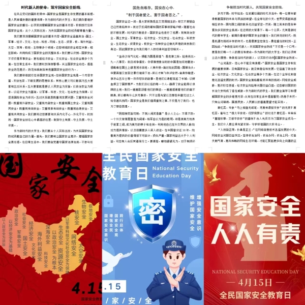 为深入学习贯彻党的二十大精神,落实习近平总书记关于全面加强国家安全教育的重要指示精神,统筹做好国家安全教育的学习宣传,增强我院学生国家安全意识和素养,近日,食品与生物工程学院开展国家安全教育主题作品征集活动,全体学生踊跃参与。