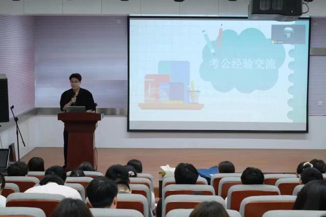 活动邀请了四位优秀的高年级学长,他们分别围绕专业学习、考公经历、创新创业及出国留学等话题,分享了自己的青春故事。牛一铭同学强调了专业学习的重要性,黄一鸣同学则为大家分享了考公路上的宝贵经验。卞豪杰同学以科技创新为切入点,鼓励同学们在面对选择时,要有清晰的定位和坚定的决心。朱伊凡同学则分享了自己出国留学的筹备经历,为有意向的同学们提供了实用的建议。在互动环节,同学们纷纷就专业学习、考研技巧、创新创业等话题提问,四位代表都一一耐心解答,现场气氛热烈。
