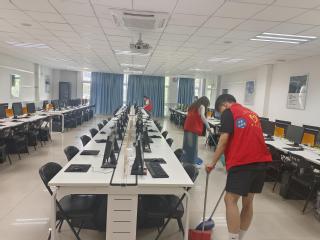 活动开始,志愿者们首先来到学院集合,按照提前分配好的任务,分工明确、仔细认真的开始对学院会议室、活动室、实验室、院系自管教室及图书馆进行物品整理归位和地面桌面的卫生清扫。经过志愿者们的打扫,能看到干净的地面、整洁的桌面、明亮的窗台、整齐的物品……志愿者们不怕脏、不怕累,一遍不行就再来一遍,室内各个地点的环境卫生在志愿者们的打扫清理之下,变得焕然一新。整个活动持续一个小时,同学们通过此次活动,也体会到了劳动的重要性和劳动育人的精神实质,纷纷表示这次主题教育活不仅让同学们对于劳动有了新的感悟,培养了同学们的社会责任感,也提高了社会实践能力,今后同学们将继承和发扬热爱劳动的优良传统,回报社会、回报国家。